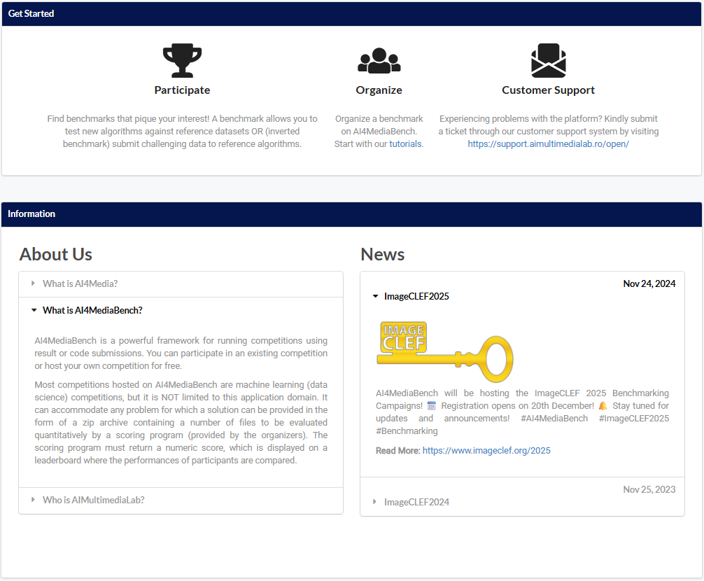 AI4MediaBench, developed by UPB’s AI Multimedia Lab, is an online Evaluation-as-a-Service platform that supports the creation, maintenance, and management of benchmarking competitions. It enables AI researchers and developers to evaluate and share tools systematically, ensuring ethical principles such as data protection, fairness, robustness, and reproducibility.